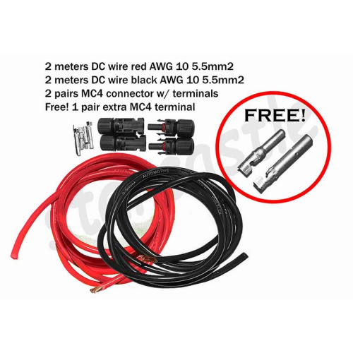 Solar panel wire cable connector extension 2 meters Philflex DC Automotive wire #10 w/ MC4 connector & FREEBIES!